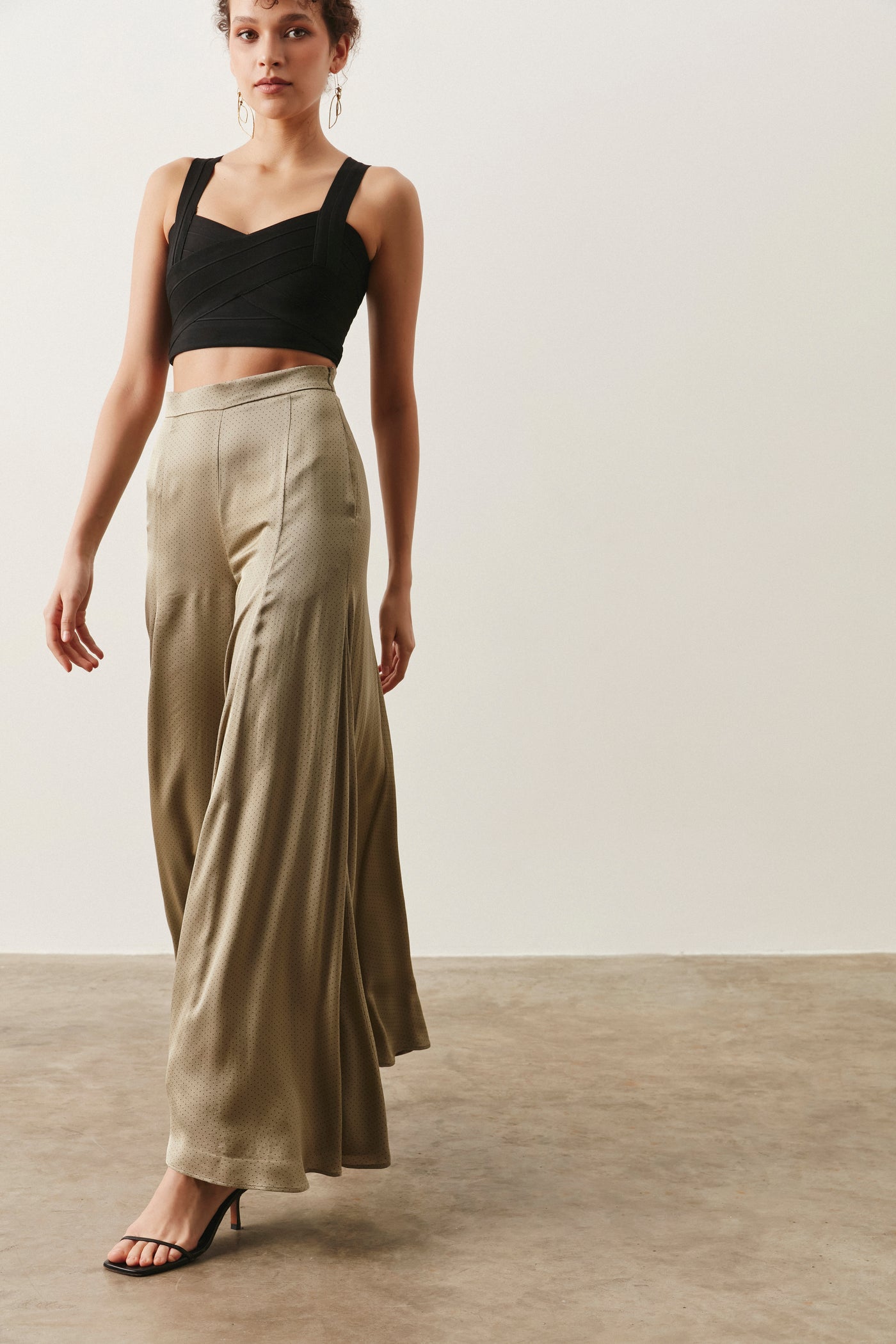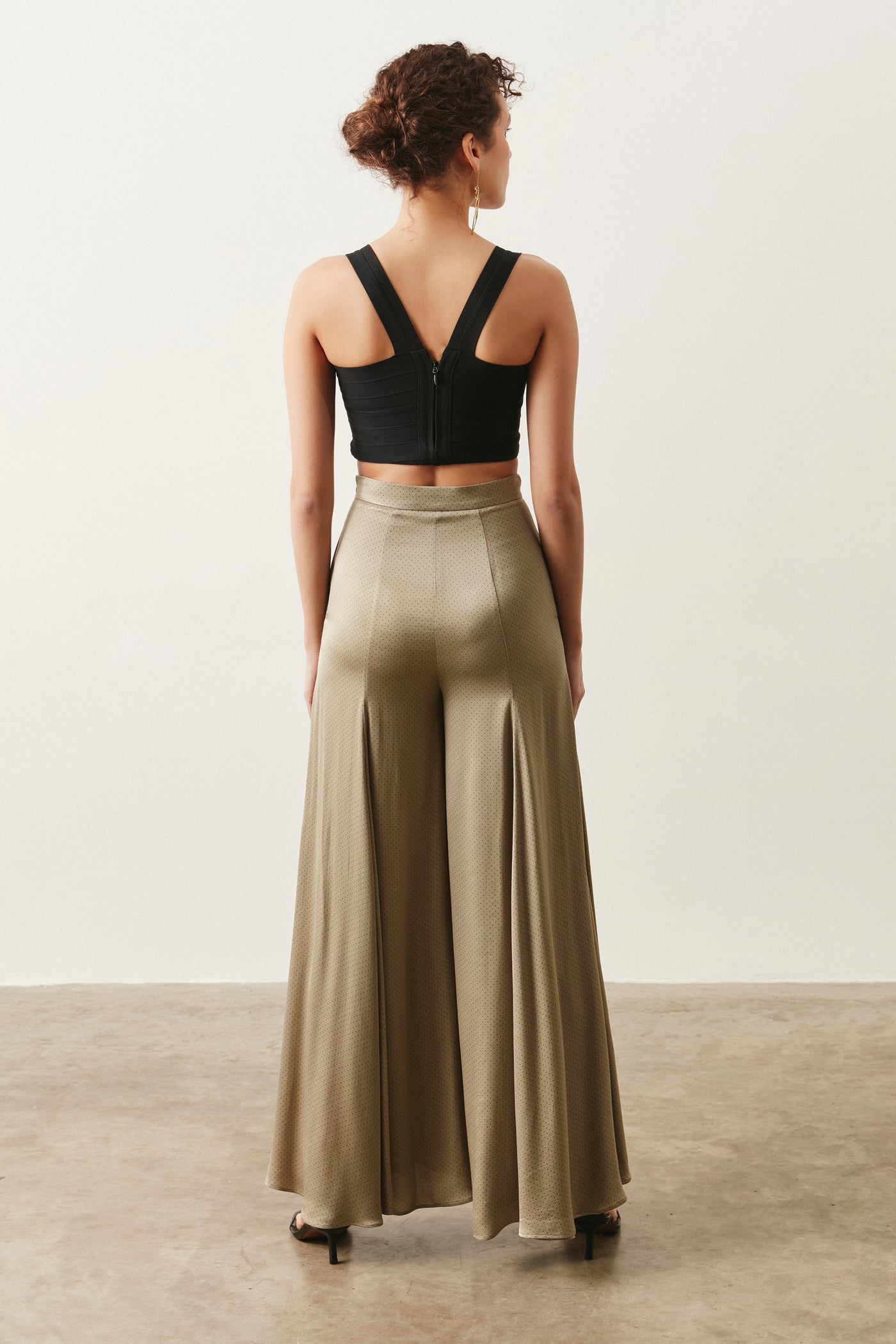 MAHA PALAZZO PANTS - XS (EU 36. UK 8) / Green Black Polka Dot