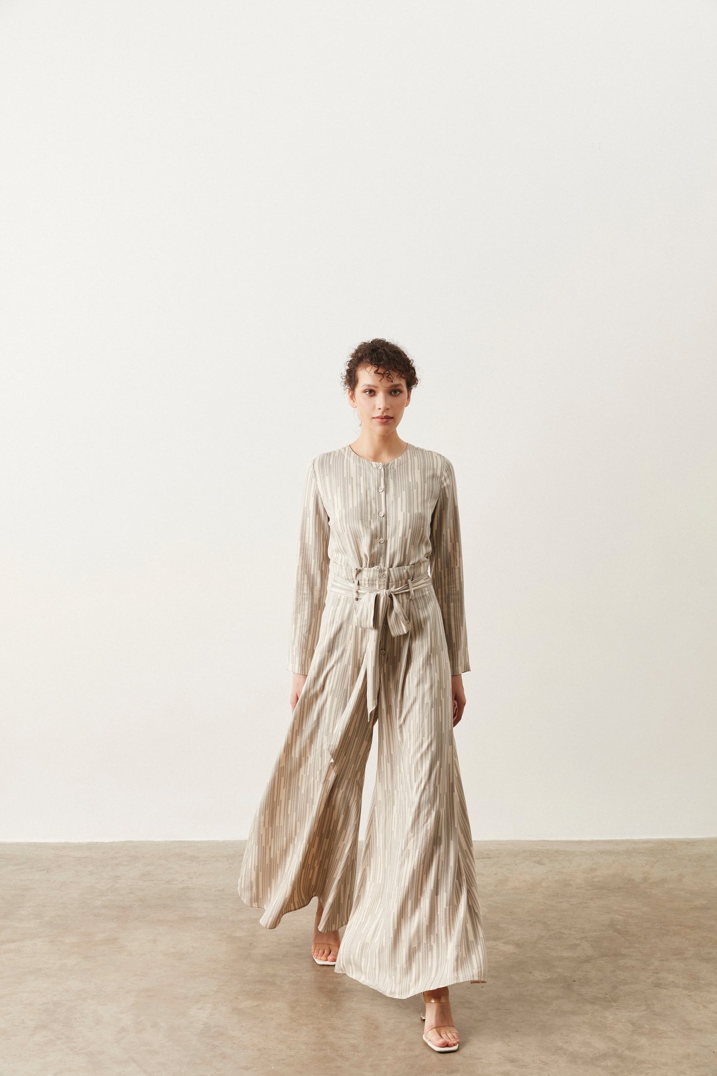 ZAARA PRINTED JUMPSUIT - XS / Beige black print